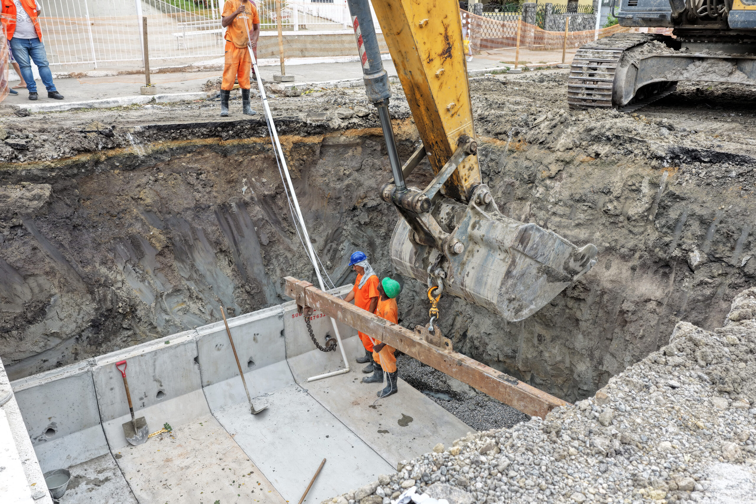 Após, a conclusão dos trabalhos da concessionária responsável pelo abastecimento de água e esgoto atuam na Rua Craveiro Lopes, as equipes realizam a instalação das manilhas na Rua Craveiro Lopes, nas proximidades da entrada da Secretaria de Ordem Pública (Seop) e na Rua Vereador José Vicente Sobrinho, além da requalificação de calçadas e meios-fios.