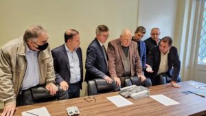 O presidente da Emusa, Paulo César Carrera, e o vice prefeito de Niterói, Paulo Bagueira, entregaram ao prefeito de Petrópolis, Rubens Bomtempo, na tarde desta segunda-feira (13) relatório com projetos de engenharia para a execução de obras de contenção de encostas nas localidades atingidas pelas fortes chuvas na cidade em fevereiro deste ano.