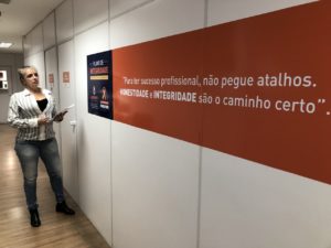 Com objetivo de intensificar e valorizar a cultura de Integridade e Compliance na administração pública, a Emusa oficializou nesta quinta-feira (30), a campanha de divulgação sobre o tema com a instalação de adesivos no ambiente interno da empresa. Seis adesivos foram instalados com mensagens de conduta ética e boas práticas a serem aplicadas no cotidiano dos que visitam e trabalham na organização, cujo objetivo é eliminar irregularidades e desvios e assim aumentar a transparência e os canais de comunicação com a sociedade.