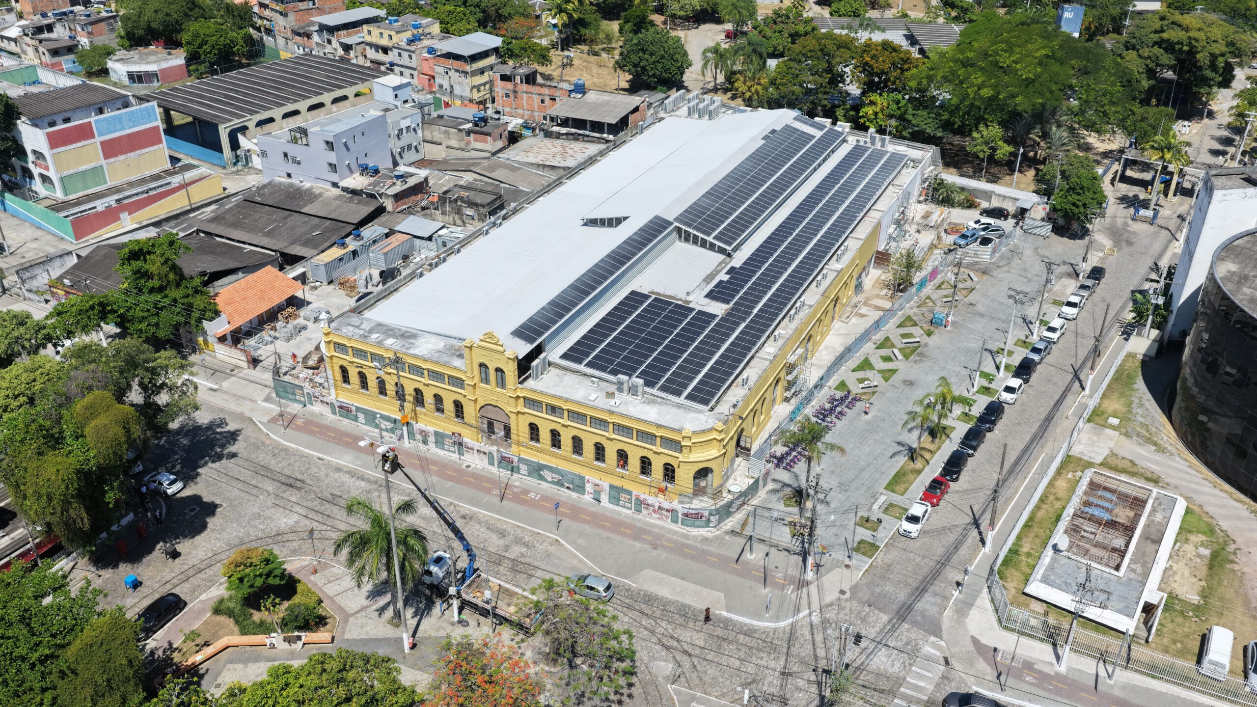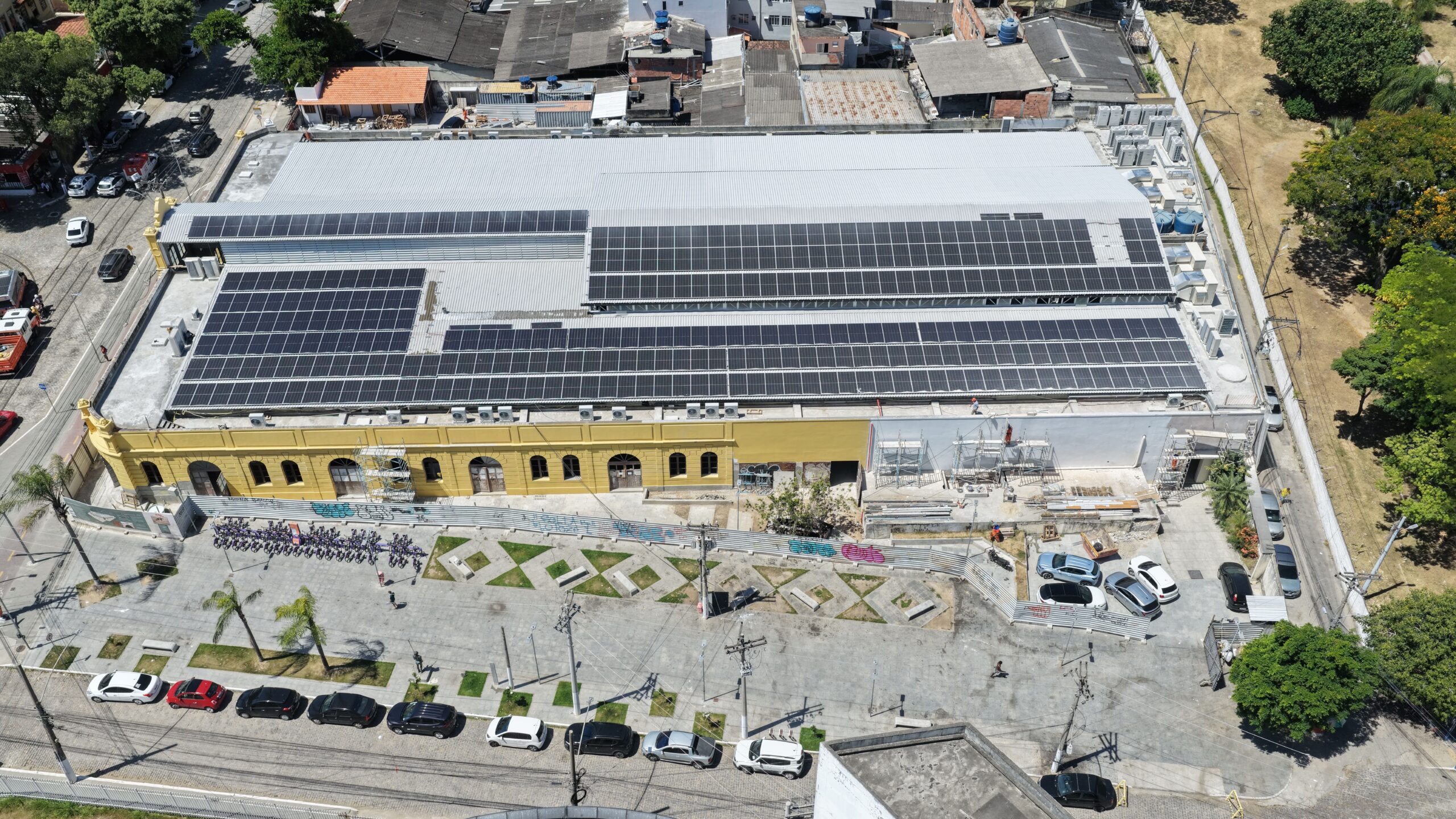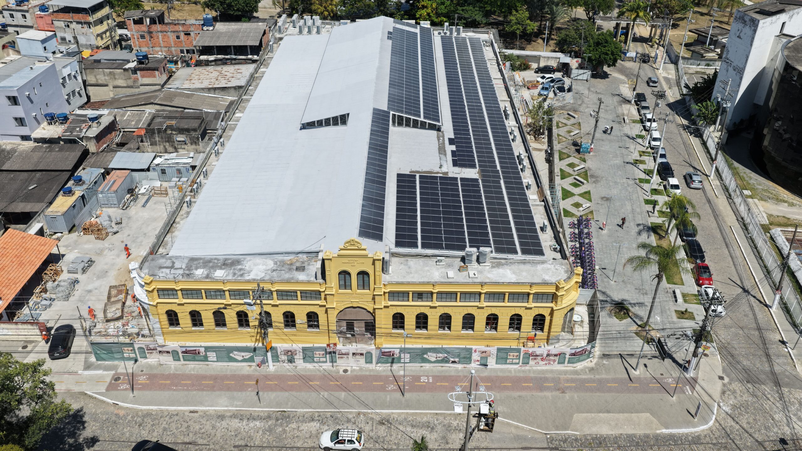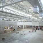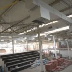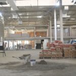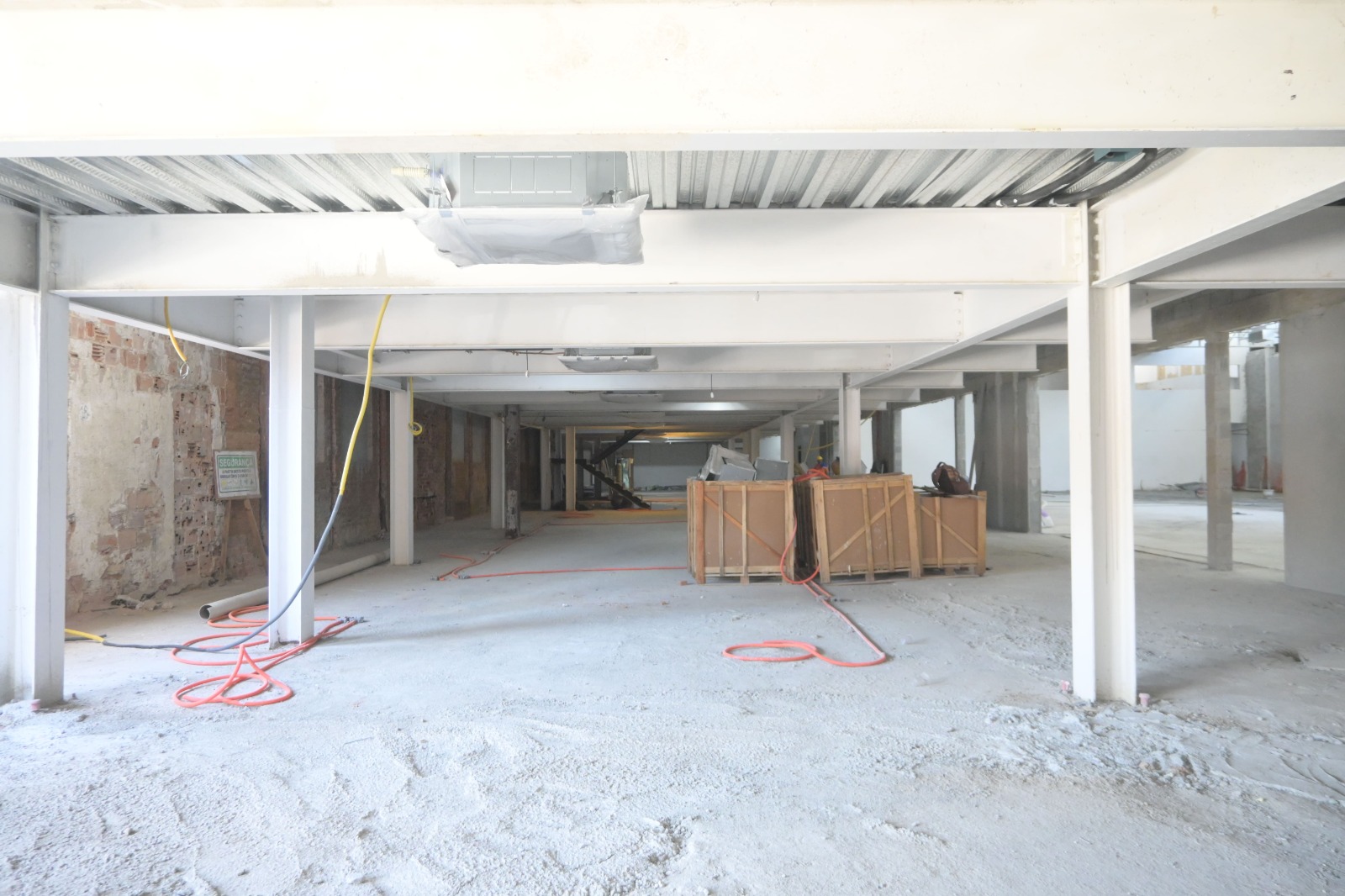 No momento , as equipes trabalham na instalação do piso granilite, instalação do sistemas de ar-condicionado e exaustão, reboco nas salas e auditório.