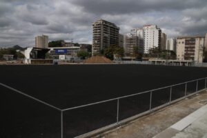 Logo ao lado, outra intervenção bastante avançada é a reforma da pista de atletismo, resultado de uma parceria com a Universidade Federal Fluminense (UFF). O local também terá um campo de futebol e os sistemas de drenagem e irrigação já estão concluídos. Até o final de agosto está prevista a conclusão da arquibancada e da pista de caminhada. Há um maior trabalho nos quatro vestiários do complexo, onde ocorre a instalação das redes elétrica e hidráulica e do emboço da área externa.